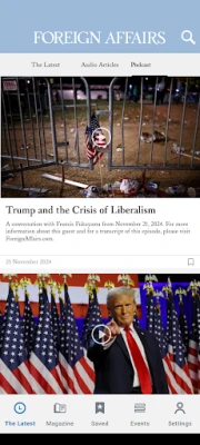 Foreign Affairs 应用提供每日屡获殊荣的全球新闻评论。深度解析国际时事,助您全面洞察复杂的世界格局与重要趋势。