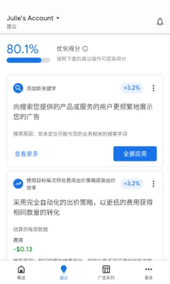 使用 Google Ads 移动应用,随时随地轻松管理您的广告系列。实时跟踪效果,获取个性化优化建议,助您随时掌握并提升广告表现,轻松采取行动。